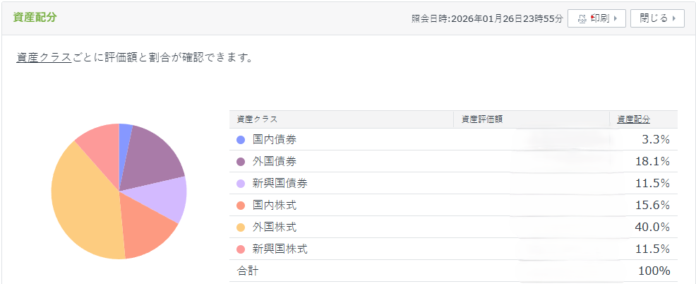 「国内債券」「外国債券」「国内株式」……カラフルに色分けされ、教科書通りの「バランスの良い分散投資」に見えるかもしれません。