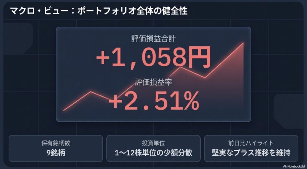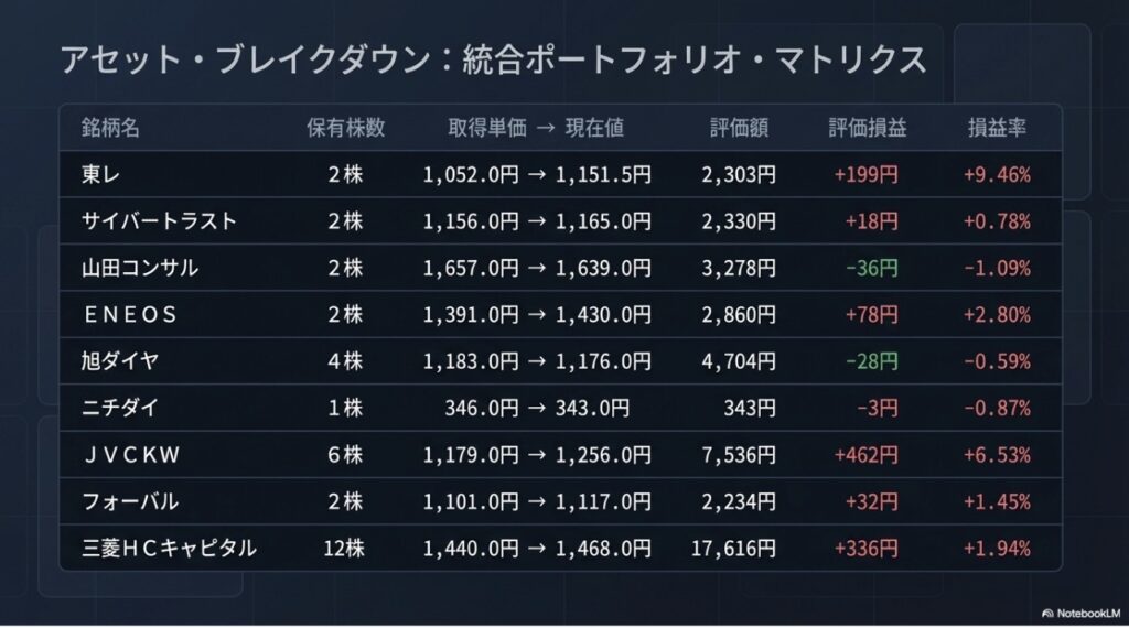 裏のデータ分析(NotebookLM)と現場の監査役(AI Studio)と共に、本日もSBI証券S株ポートフォリオの最新状況を解剖していきます。